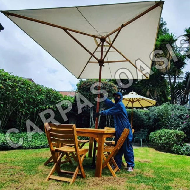 Sistema importado de anclaje a fachada con brazos extensibles, opción de manejo manual o motorizado, aptos para terrazas o locales comerciales.