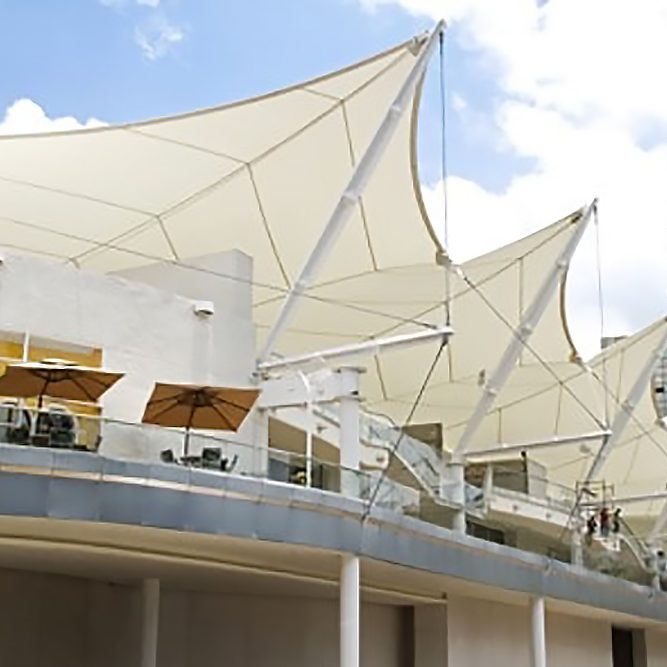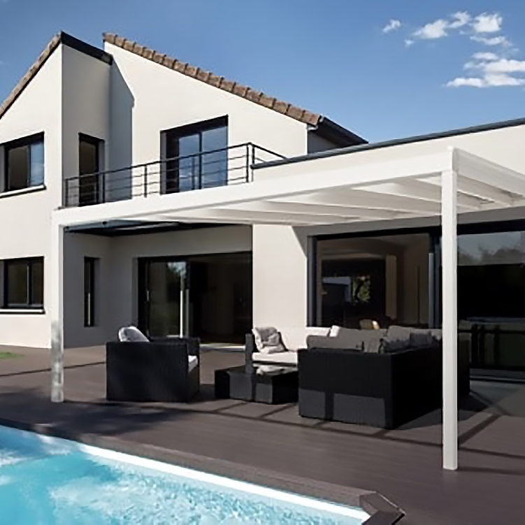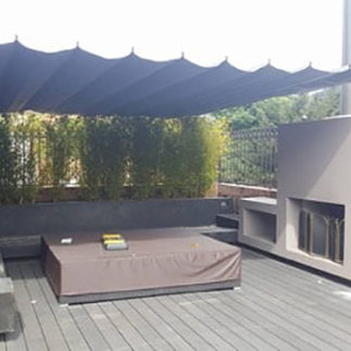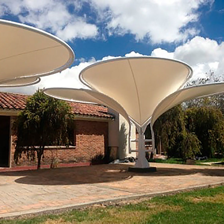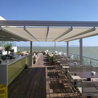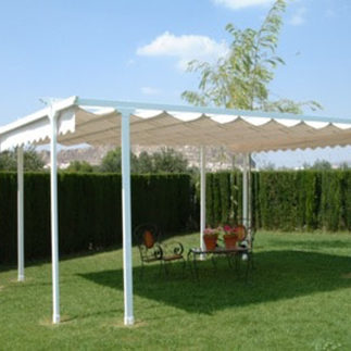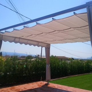 Estructuras tipo pérgola, con apertura y cierre de lona tipo acordeón, manejo manual o motorizado, lona acrílica con vida útil a exterior de 15 a 18 años.
